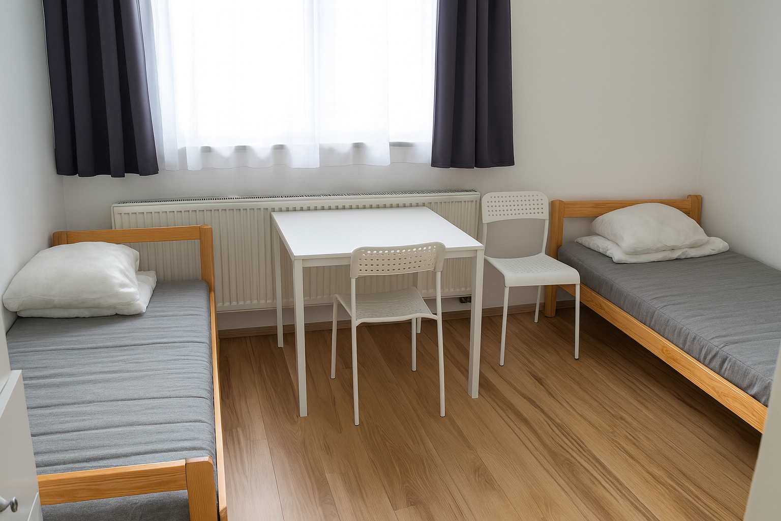 Az épületben saját fürdőszobás szobák találhatóak, Staff House standard felszereltséggel. Sütni, főzni a közös használatú konyhában lehet, a ruhák mosására automata mosógépek állnak rendelkezésre. WiFi (internet csatlakozás) a teljes épületben ingyenes biztosított.